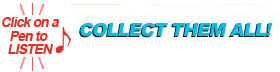 Click the top of pen to turn music on or off. This high-tech writing-pen stands 5-1/2" high. It is beautifully packaged in a collectible blister card. Replaceable batteries last a minimum of 3,000 to 5,500 playbacks. Our patent pending technology produces great sound at just the right volume. |